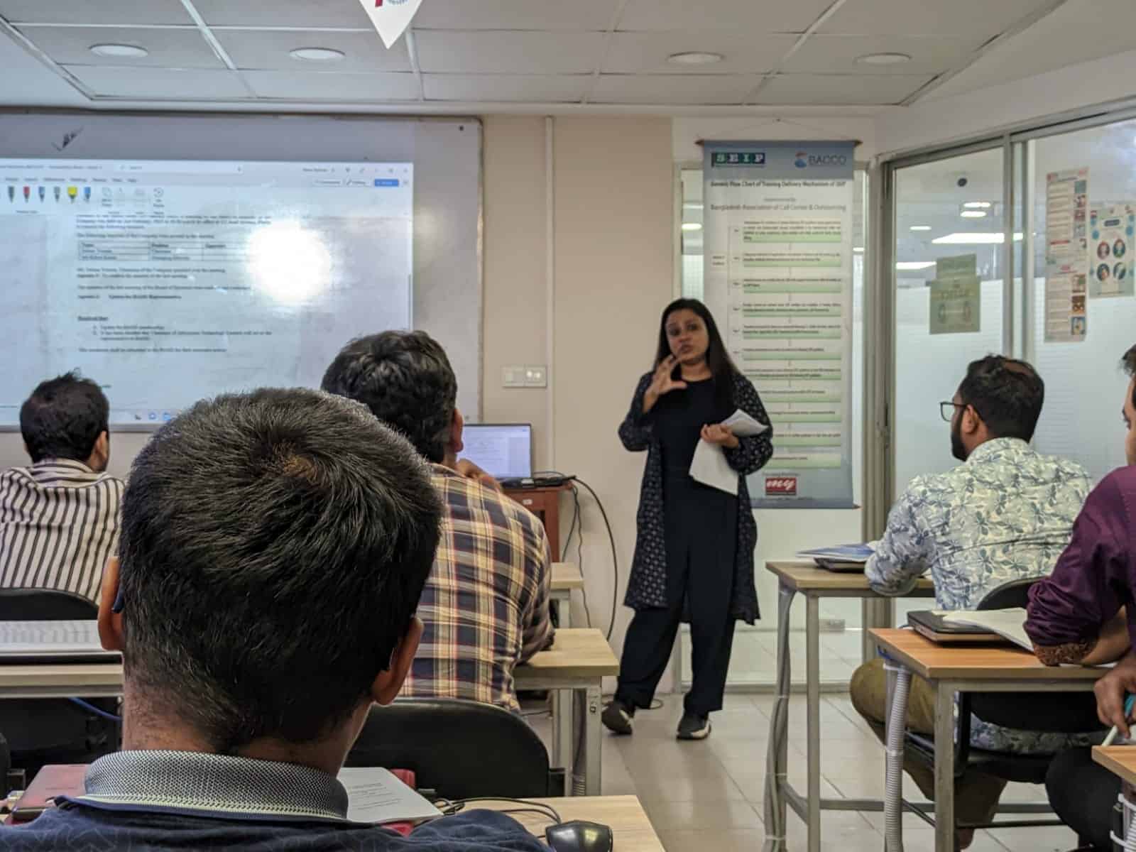 In her 30 years of career, she has developed numerous training modules and manuals, especially for young people. She completed two Training of Trainers for BRAC International for their new project Mastercard Foundation Accelerating Impact for Young Women (AIM) program, one in Uganda and the other in Sierra Leone in 2022. She was engaged to develop a Training Manual for developing the Leadership skills of female worker leaders working in the RMG sector to ensure their workplace rights for ActionAid Bangladesh. She has worked with Care Bangladesh to develop training modules for managers and supervisors of RMG and Ceramic sector to ensure women’s empowerment in their respective factories. She was engaged with CREA as a Feminist Mentor for NGO female Executive Directors.